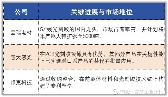 原材料依赖:制造高端光刻胶所需的树脂、光敏剂等核心原料,进口依赖度仍然很高(超过60%),是产业链的薄弱环节。