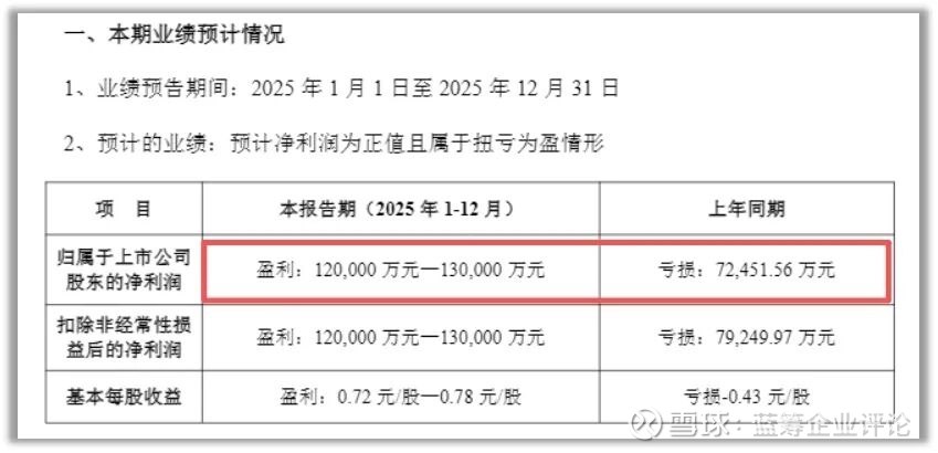 我们先来看这份堪称“魔术表演”的业绩修复。2026年1月,以岭药业发布2025年度业绩预告,公司预计实现归母净利润12亿-13亿元。要知道,在前一年(2024年),这个数字是亏损7.25亿元。这种“V型反转”在A股市场中并不多见 。