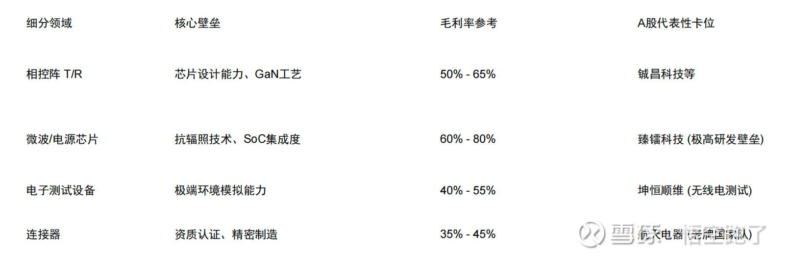连接器 (Interconnect):航天连接器一旦升空无法维修。该领域呈现双寡头/多寡头垄断格局,利润极其丰厚且稳定。