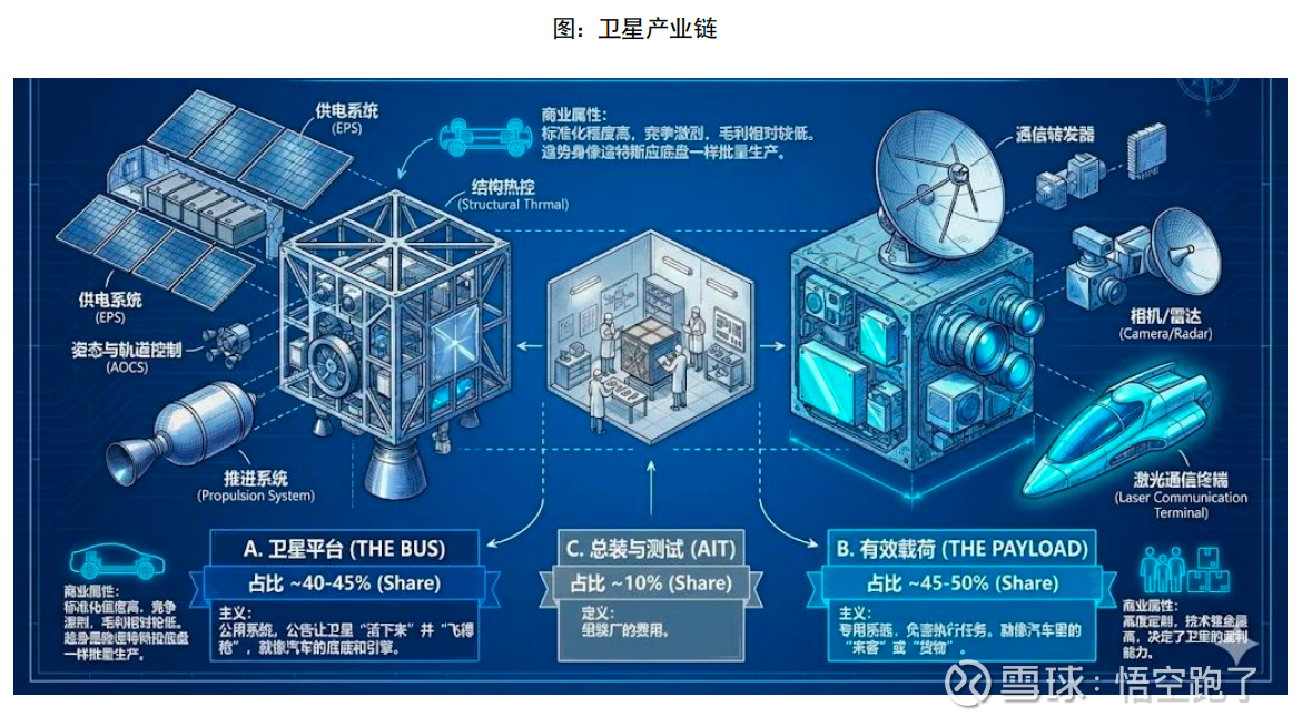 定义: 专用系统,负责执行任务。就像汽车里的“乘客”或“货物”。构成: 通信转发器、相机/雷达、激光通信终端。
