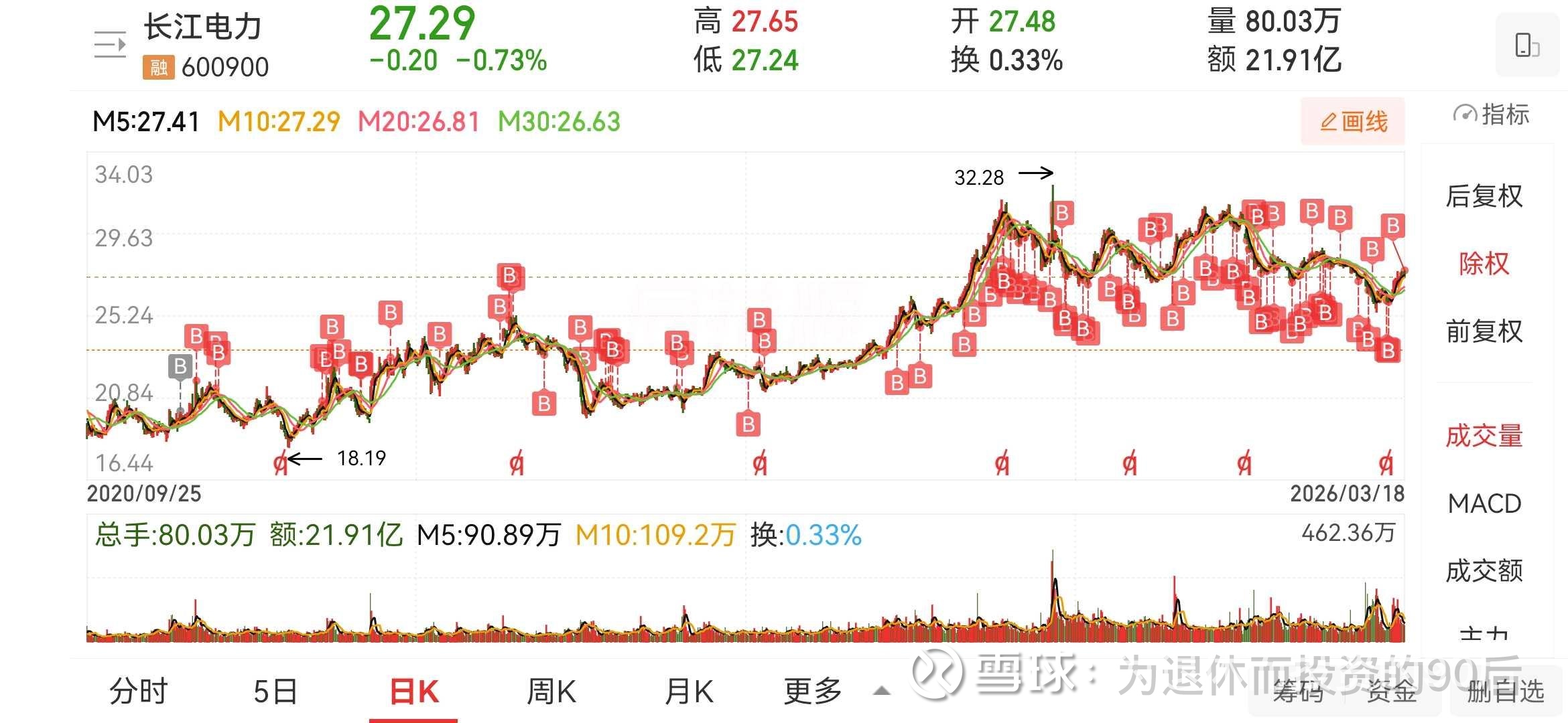 以27.30元/股加仓长江电力