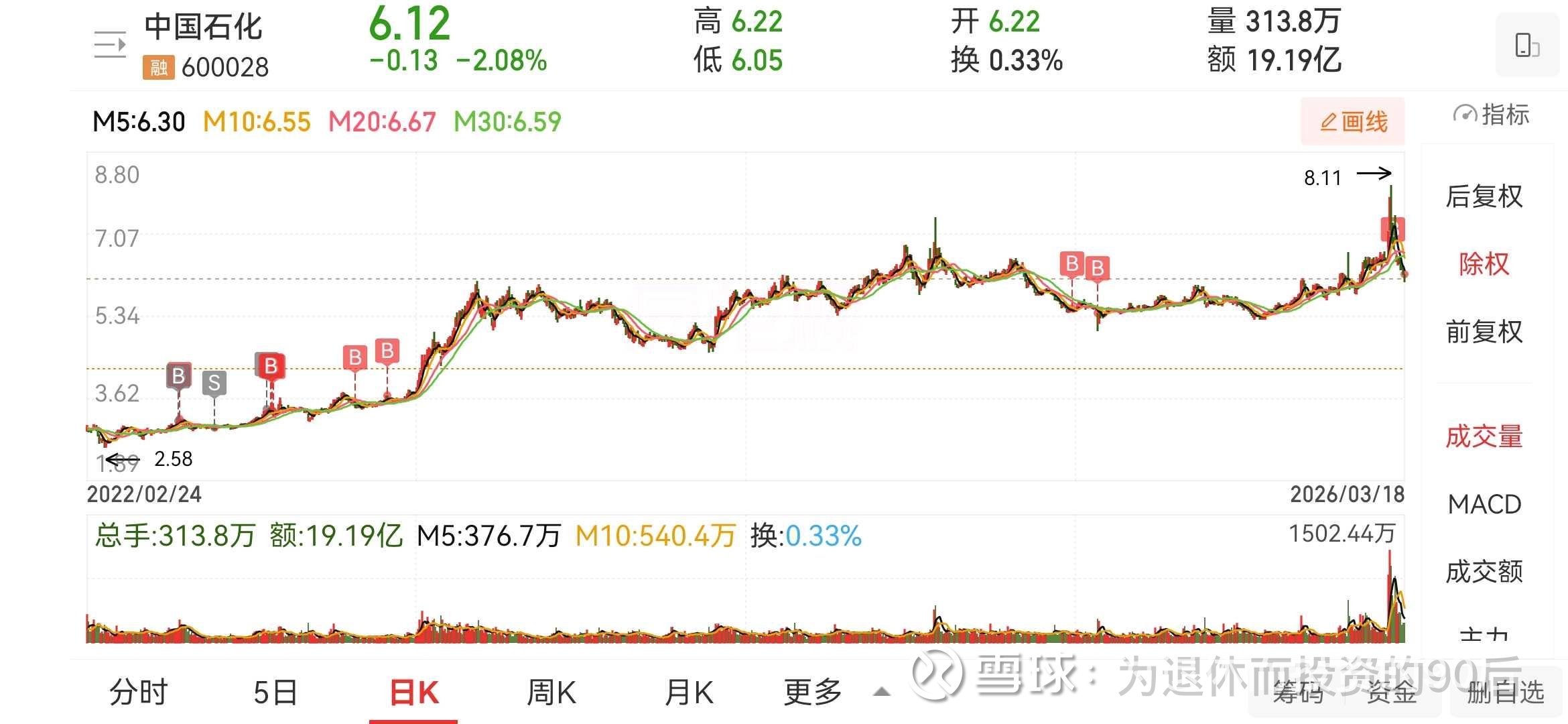$中国石化(SH600028)$