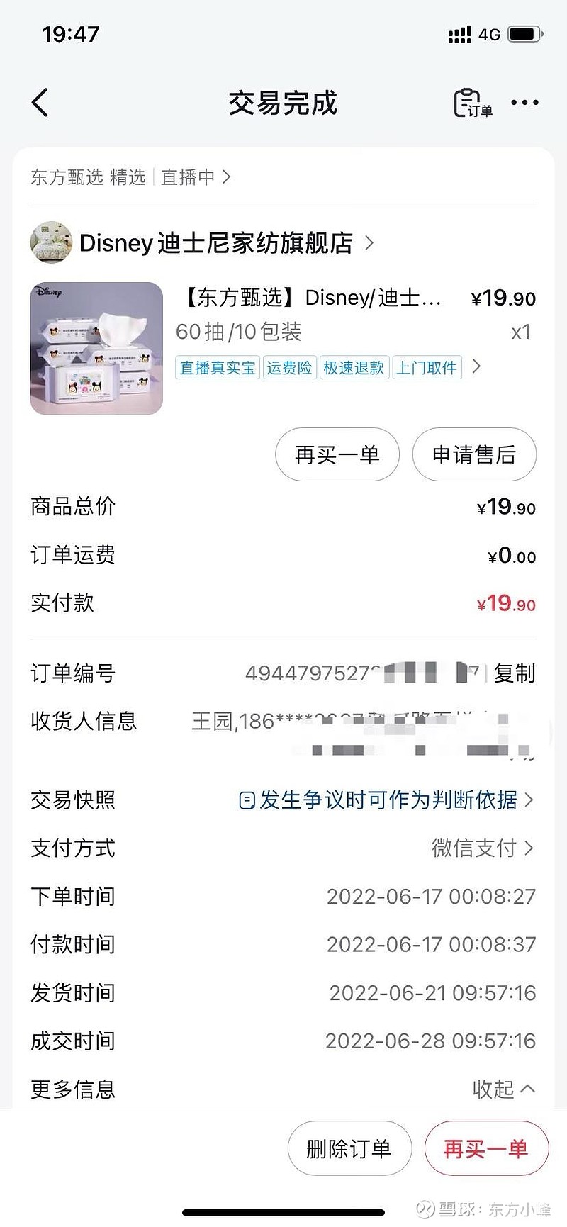 我与东方甄选的故事始于2022年6月,那时第一次下单的是外链湿纸巾。后来平台推出了自营烤肠,我便断续续一直回购,也买过外链猪肋排、自营的贝贝南瓜和蛋黄酥等……在那段时间里,我还只是一位普通的消费者。