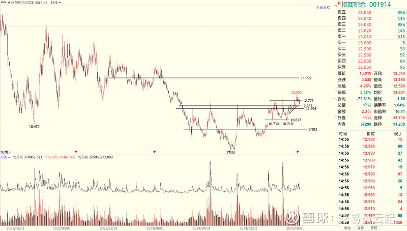 $招商积余(SZ001914)$ 12.5之下头肩底,加上10.8-12.8之间的横盘,奠定了后市上涨到20的基础;