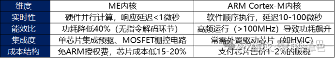自主可控和全球依赖的区别,ME内核属于闭环生态,公司有自己的ME-Studio,ARM内核属于开放生态,通用性较强但是具体差别包括成本如下图所示。
