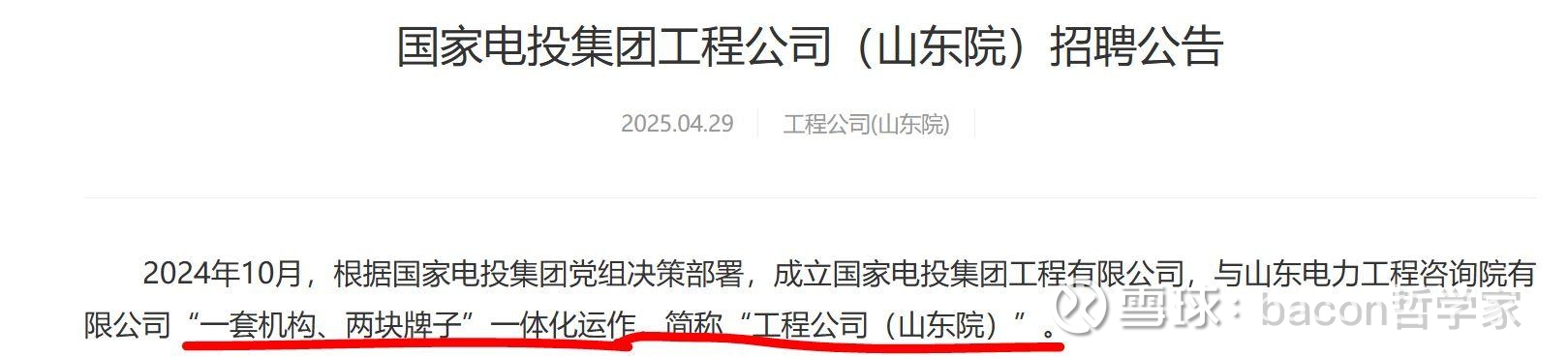 1、“工程公司|山东院”:“工程公司”,指国家电投集团工程有限公司,2025年3月成立,董事长林华;“山东院”,指山东电力工程咨询院有限公司(目前股东:国核技术)。可以推定,“工程公司”将控股“山东院”。
