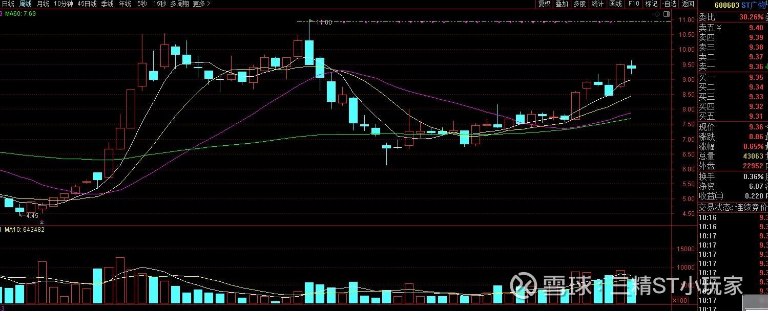 预判ST广物(600603)于10月12日申请摘帽,由于10月12日是星期日,故可能于10月10日星期五晚提出摘帽申请!除去国庆长假,申请摘帽距今只有12个交易日。