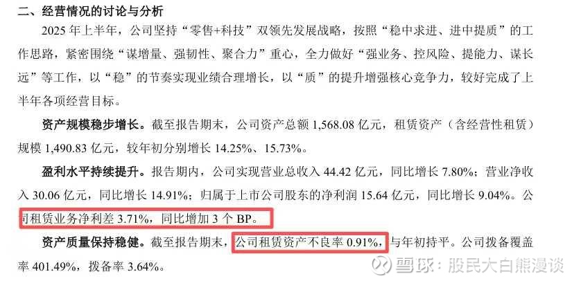 江苏金租的经营数据还是比较不错,它的不良率只有0.91%,四大行普遍都在1点多以上,而零售之王招商银行的不良率也有0.96%。