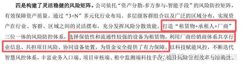 江苏金租在风控方面做得不错,它与厂商经销商共担项目风险,而且租赁物也是流通性强的设备,一旦客户违约,也能及时止损变现。