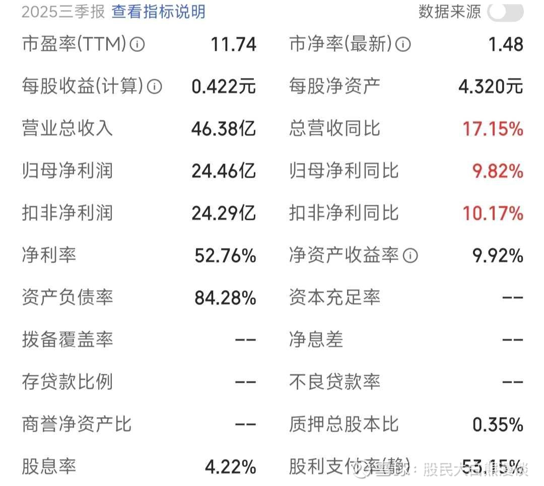 而它比较好的地方是还可以保持比较不错的增速和它的股息率也还行,但要是看股息率,它不如银行里面的招行和华夏银行,整体估值比较偏高。