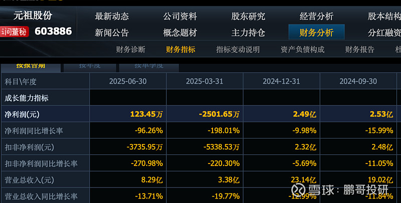 元祖股份,收入下降14%到8亿,净利润下降96%到0亿。