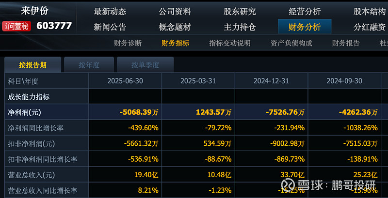 来伊份,收入增长8%到19亿,净利润下降439%到-0.5亿。