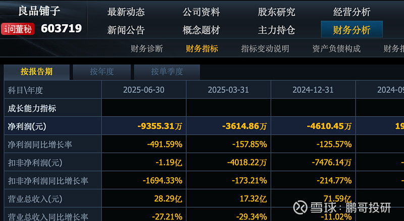 良品铺子,收入下降27%到28亿,净利润下降492%到-1.0亿。