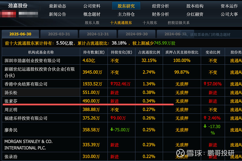 劲嘉股份,新进490万股, 股价4.31元;