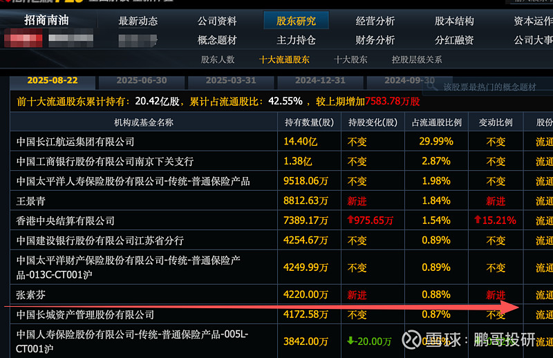 招商南油,新进4220万股,股价2.96元;