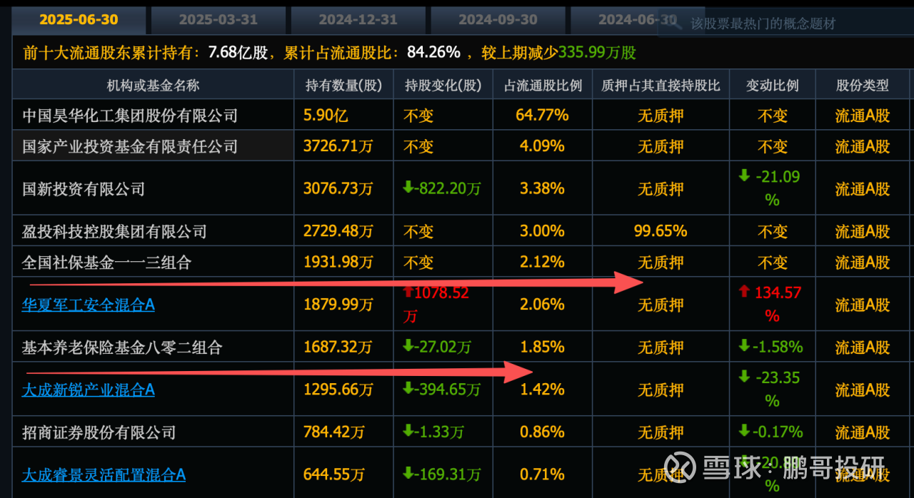 昊华科技社保基金113组合重仓1932万股,养老保险基金802组合重仓1687万股。