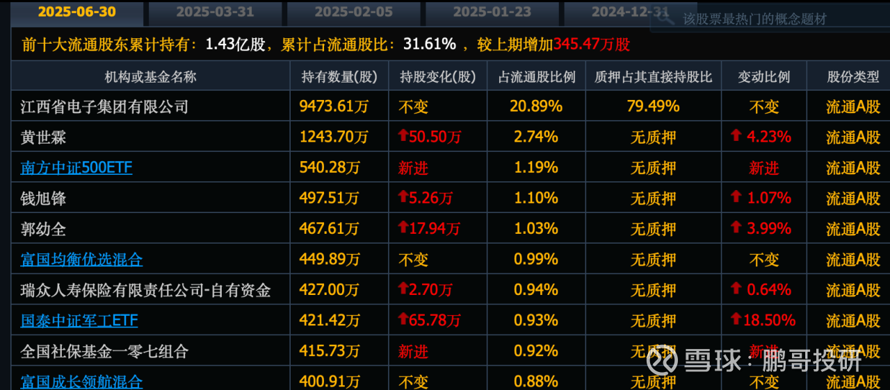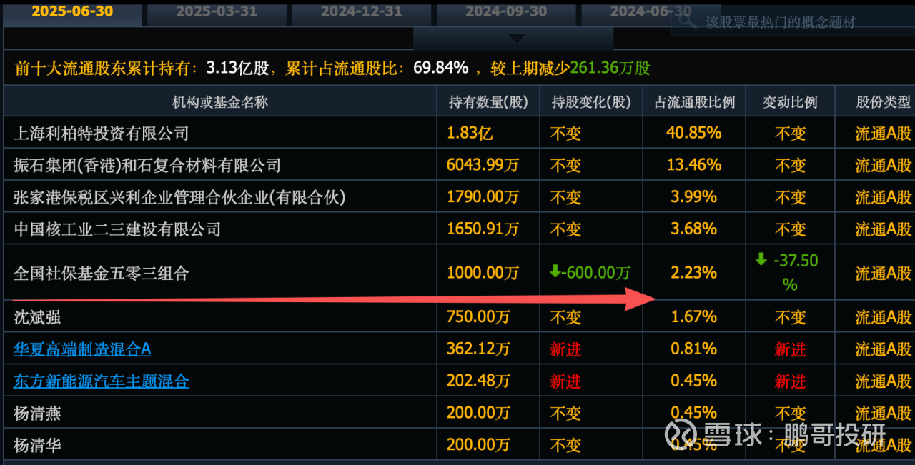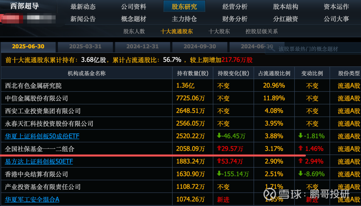 2. 西部超导,1家社保重仓2058万股,社保持股3.17%。