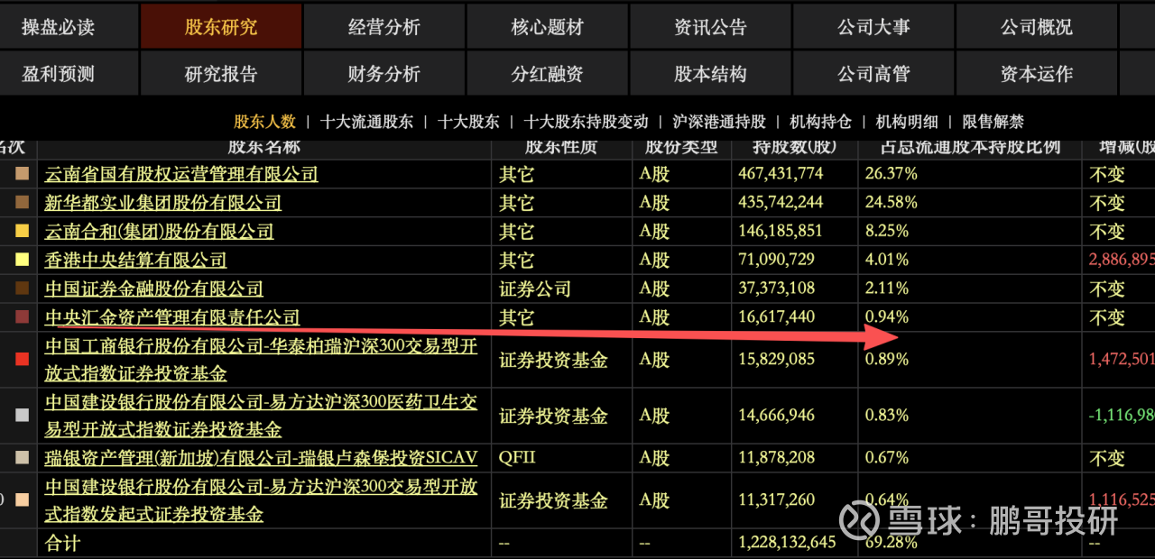 云南白药汇金重仓了1.66亿股,直接是第六大股东。