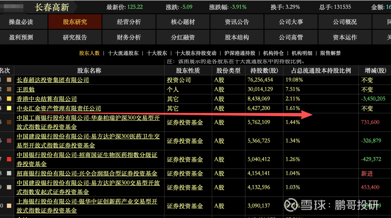 长春高新汇金公司重仓了643万股,是公司的第四大股东。