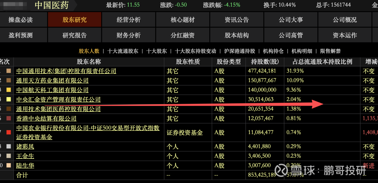 中国医药,中央汇金重仓了3051万股,是公司第四大股东。国务院国资委直管央企,1600 余家成员企业,覆盖研、产、销、零售全产业链;全球最大疫苗企业、国内最大血液制品产能,化药全剂型、中药全产业链、高端器械均布局;7 大枢纽 + 43 个省级物流中心(仓储超 300 万㎡),服务 70 万 + 终端,旗下 1 万 + 家连锁药店;