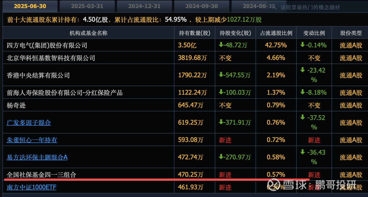 高澜股份,社保持股4621.41万,持股占比0.96%