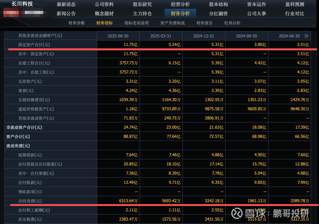 长川科技的业绩会很好,是可以通过资产负债表提前看出来的,今年半年报,长川科技的固定资产是11.75亿,而去年同期是3.51亿,合同负债是0.63亿,去年是0.26亿,还有存货是30亿,去年同期是22亿。就连应付职工薪酬,相较于去年上半年也是翻倍的,从资产负债表,我们能明显感受到,凡是与业务经营相关的资产,都是明显增长的。也就是说公司的业务在快速扩张!所以通过资产负债表,我们是能够找到那些潜在高增长的公司的。
