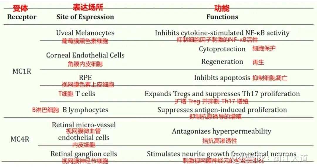图2. α-MSH受体在眼睛中的表达和功能 (来源:参考文献5)
