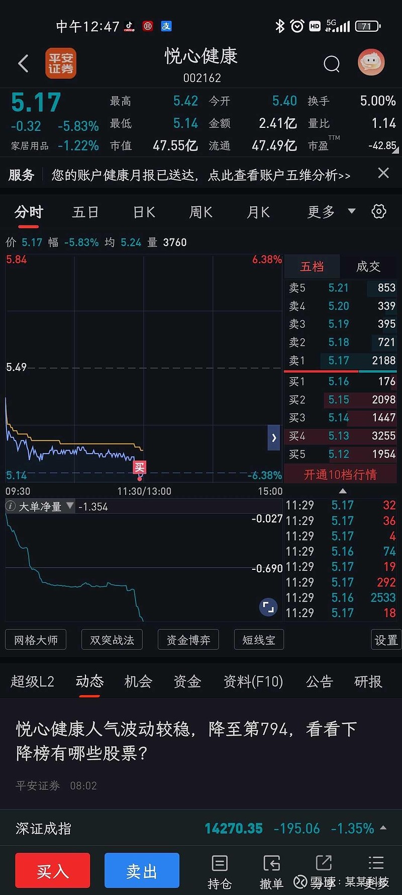 $悦心健康(SZ002162)$