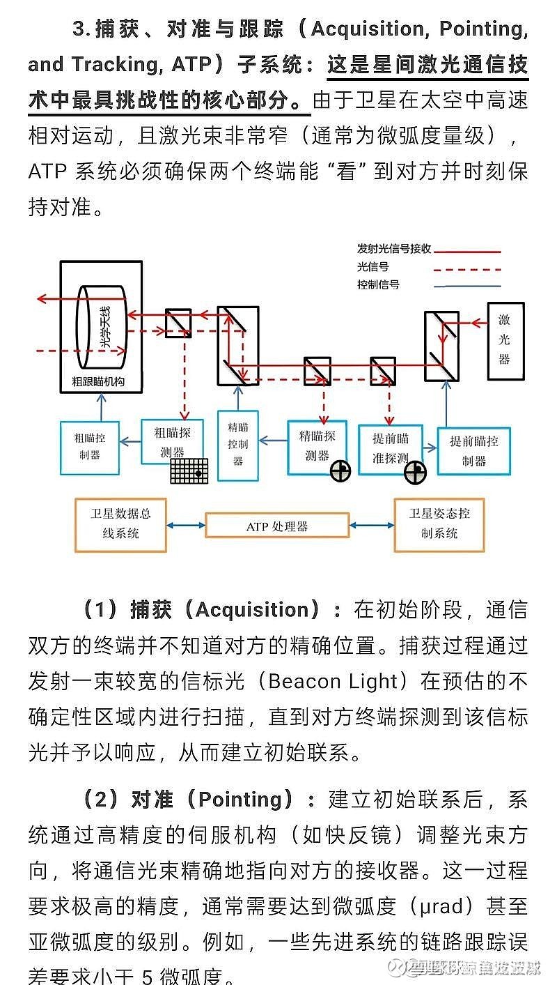 ◦ 星载EDFA(掺铒光纤放大器):虽非ATP核心环节,但为激光通信的光信号做放大,保障捕获/对准/跟踪过程中光信号的传输质量。