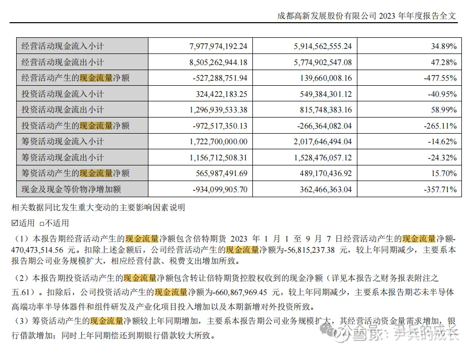 高新发展经营活动产生的现金流量净额:-5.27亿(是负数;远小于净利润3.31亿,只能说它把利润大量补贴到转型的行业中去了);