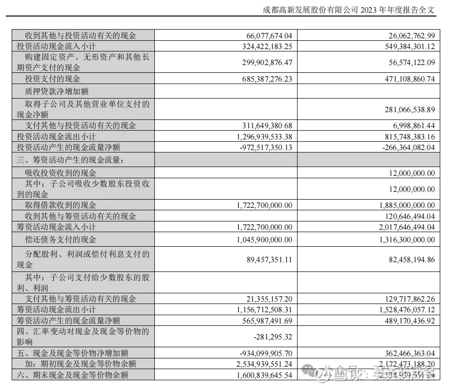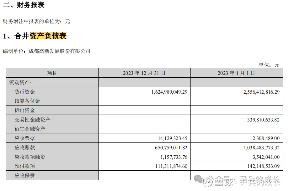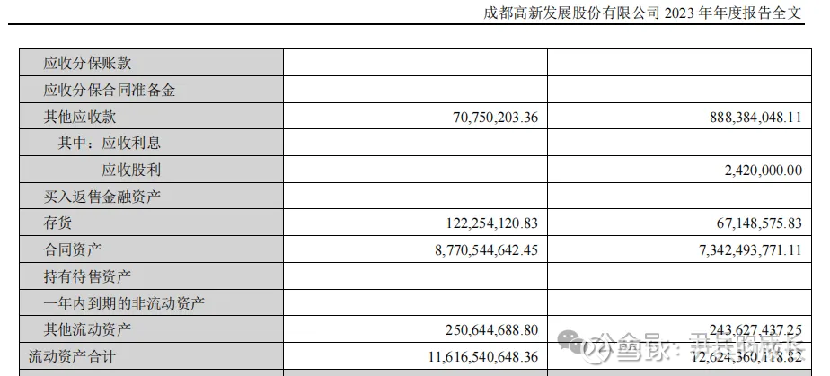 从高新发展的2023年年报资产负债表中我们提取一下数据: