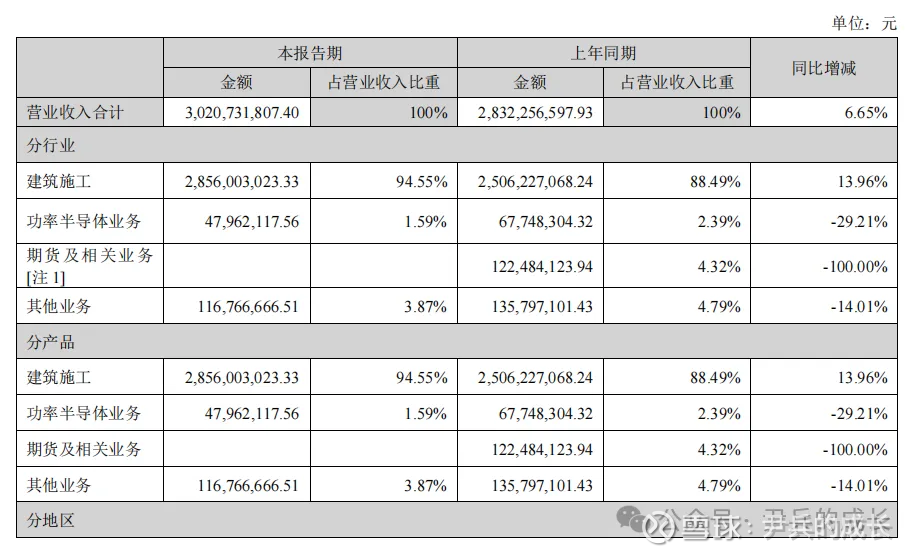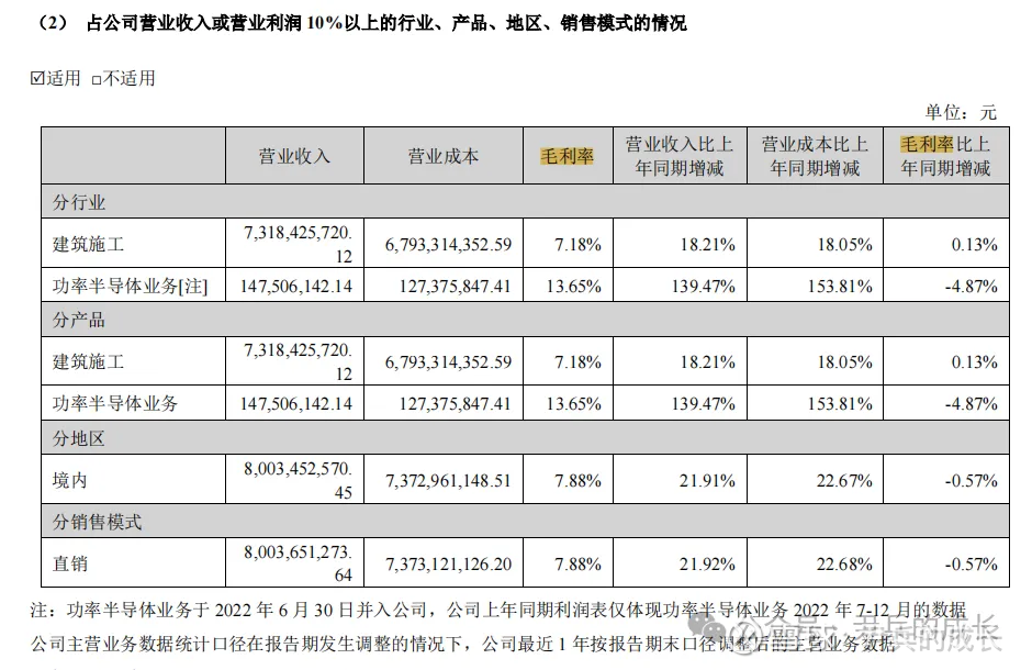 仍然是建筑施工主业的增长,转型的功率半导体业务比重任然占比过小,