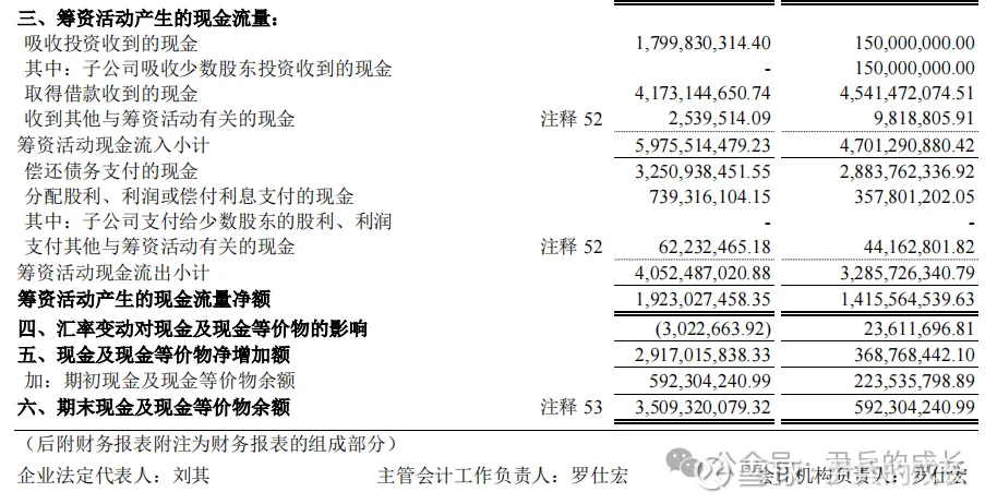 德赛电池筹资活动产生的现金流量净额:-19.04亿(是负数)。