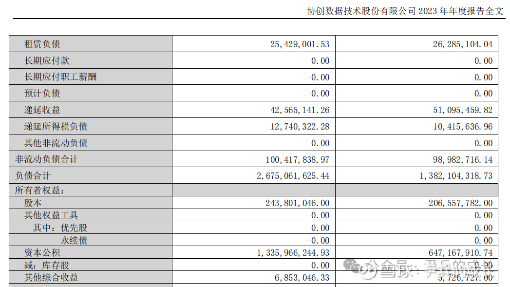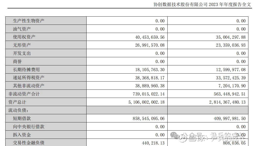 从协创数据 的2023年年报资产负债表中我们提取一下数据: