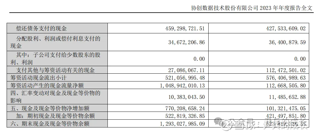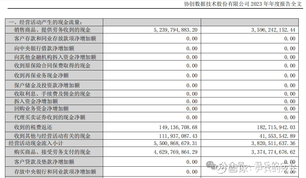 我们再来看看 协创数据 2023年年报的现金流量表: