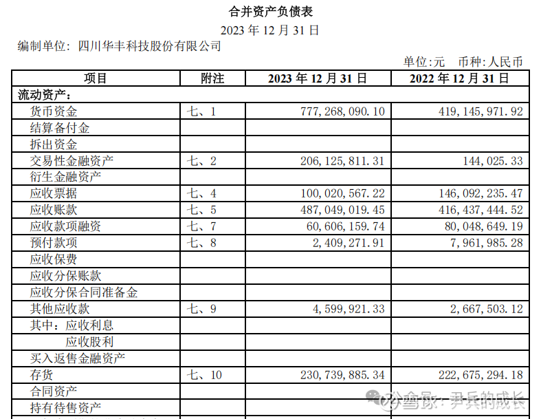 从华丰科技 的2023年年报资产负债表中我们提取一下数据: