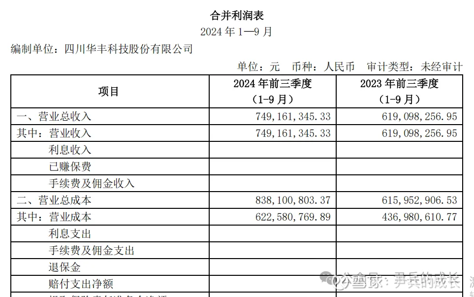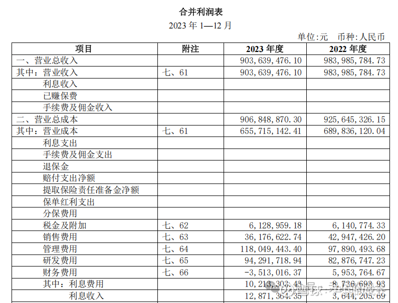 我们再来看看 华丰科技 的2023年年报的利润表: