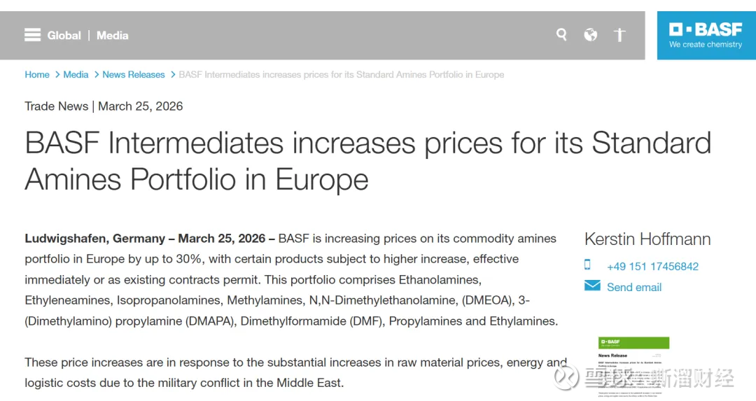 巴斯夫的基础胺提价,表面是企业应对成本的常规动作,实质是地缘冲突扰动下,欧洲化工体系成本重估的又一次深化。