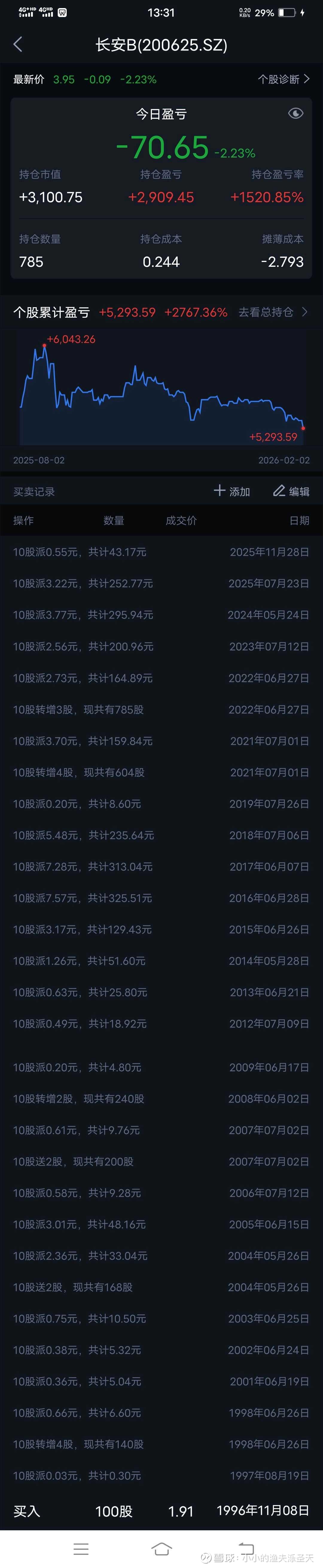 受了兔兔启发决定翻石头后,我第一个看的就是长安汽车财报,因为兔兔认为这家公司的B股分红不错,持股收益很可以,不输于古井B。