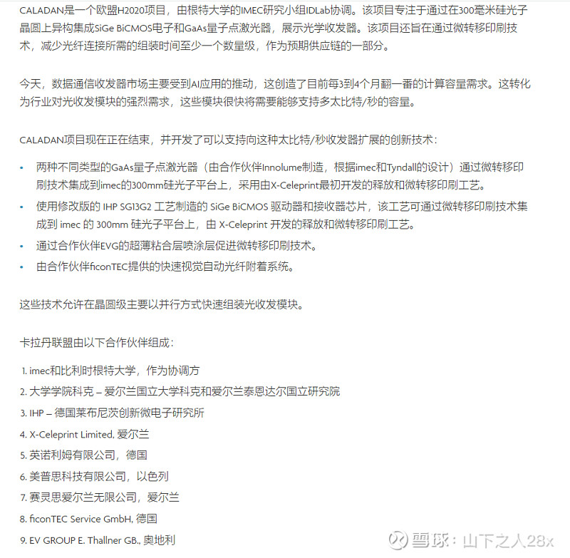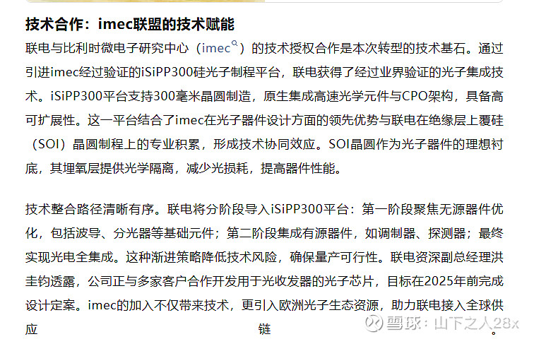 联电引入imec iSiPP300硅光子平台技术布局CPO,预计2026年试产,27年量产,而imec是ficontec多年的合作伙伴,使用imec的平台肯定需要ficontec的设备,合理预计联电马上也要下单ficontec设备没毛病吧