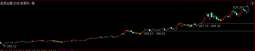 能源金属,关税战4月9日之后一直是向上走的,中间经历了4次小的下跌趋势,但都能重新回到上涨趋势,这种走势就是好的走势,关键是要能在启动初期把逻辑想通。