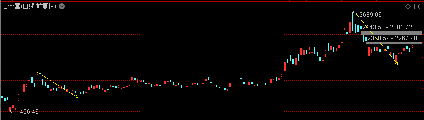 贵金属可能要注意的,虽然今天跟随涨价概念形成了上涨趋势,但它前面有一个更高的压力,不确定短期是不是能冲过去?