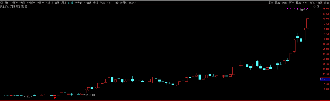 我们虽然可以看到紫金矿业6年超过40倍的投资机会,但其实在2021年到2024年,资金矿业也一直是在10元-6.5元之间盘整了4年。