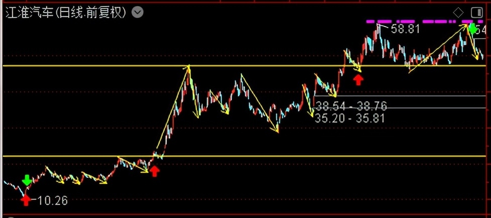 江淮汽车这个位置即使突破之前58元的高位形成突破买点,你能期待突破后有多少空间?