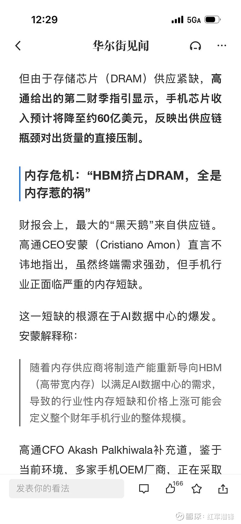 最新高通电话会议:要点就是内存吃紧导致手机出货低于预期、聚辰的手机业务也会受影响、这是未来业绩能否稳定增长要注意警惕的
