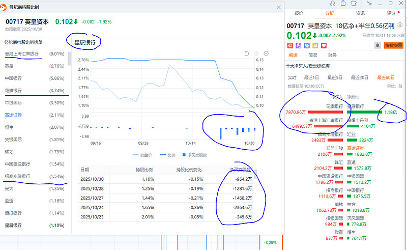 $恒生指数(HKHSI)$ $英皇资本(00717)$年报截止日是 2025年9.30日,马上要开董事会出年报业绩了,上半年业绩已经非常不错,截至2025年3月31日的六个月内的中报的利润归属于股东增长了35%,从上年的4160万港元增至5610万港元,加上3月-9月的下半年,港股市场交易畅旺,作为港股券商一定受益,英皇资本(00717)账上有18亿的净现金,股票融资这块的利润一定大增。应该有预喜公告,个人预判英皇资本(00717)全年利润超1亿,个人预测今年会恢复派息。