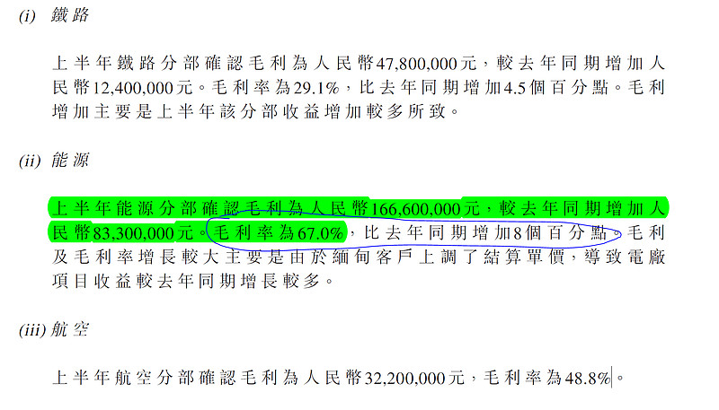 於緬甸仰光投資建造並運營的AHLONE 15.1 萬千瓦電廠項目及緬甸Hlawga 12.3 萬千瓦電廠修復項目,上半年電廠項目由於緬甸客戶上調了結算單價,導致收益大幅增長。