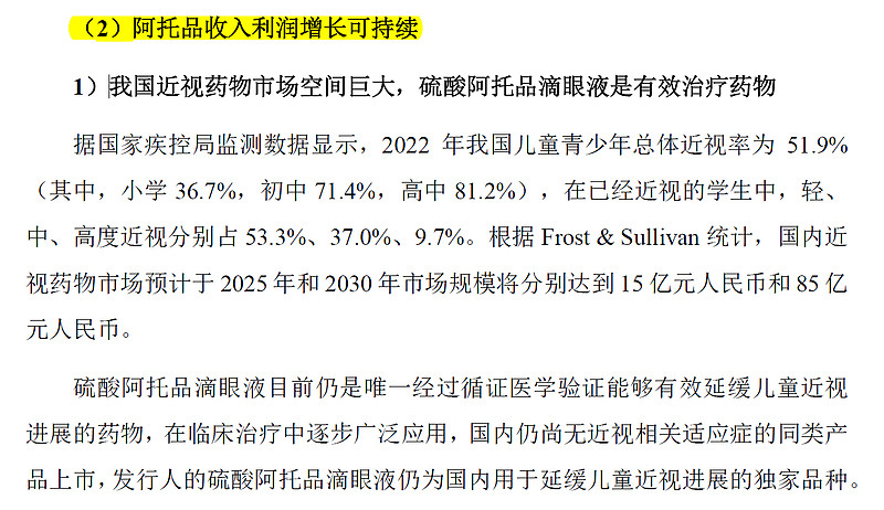 $兴齐眼药(SZ300573)$ $兆科眼科-B(06622)$ $欧康维视生物-B(01477)$ 这是2025年10月30日沈阳兴齐眼药股份有限公司申请向特定对象发行股票的审核问询函的回复披露的儿童近视药物市场规模
