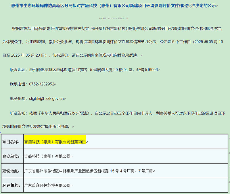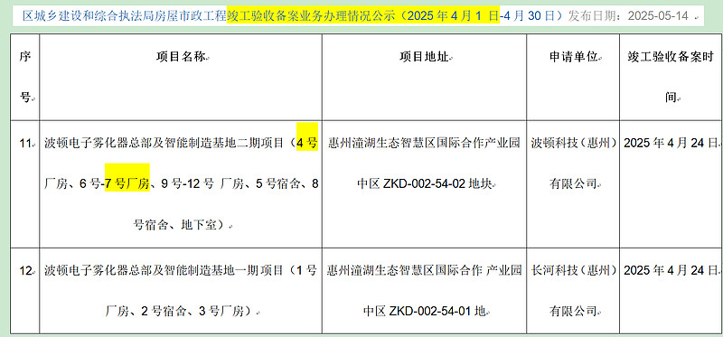 波顿旗下电子电子烟吉盛科技(惠州)入住波顿电子雾化器总部及智能制造基地中的4号、7号厂房(5层/栋)进行生产及办公,项目合计48053.7平方米(含公摊面积)。2025-05-19