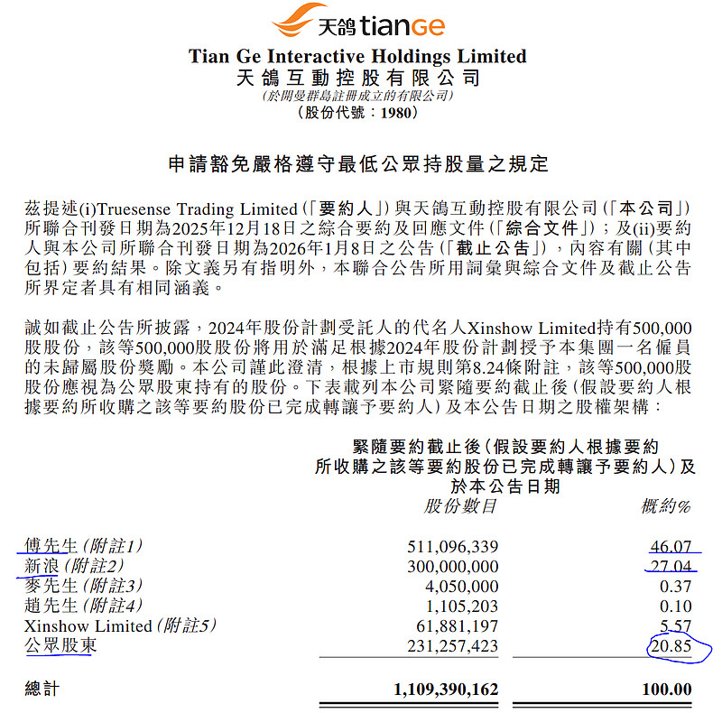 $恒生指数(HKHSI)$ $上证指数(SH000001)$ $天鸽互动(01980)$前1,2股东都在抢筹码, 现在公众持有20.85%,外面没筹码了。公司已经没啥实体业务了,账上太多钱,剩下就是分猪肉了留下的小散有汤喝
